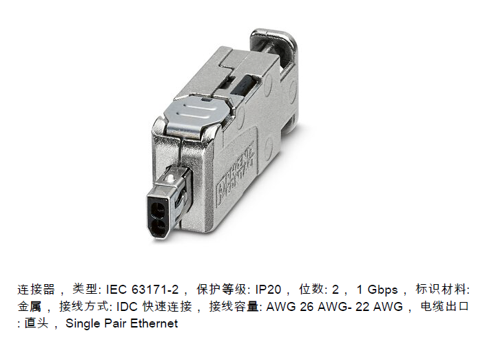 四星電子的單對(duì)以太網(wǎng)交換機(jī)IE3-10T1L5、單對(duì)以太網(wǎng)介質(zhì)轉(zhuǎn)換器IE-10T1L、單對(duì)以太網(wǎng)中繼器RPT-10T1L,其單對(duì)以太網(wǎng)接口采用的是符合IEC63171-2標(biāo)準(zhǔn)的SPE連接器插座,用戶需自行購置對(duì)應(yīng)的符合IEC63171-2標(biāo)準(zhǔn)的SPE連接器插頭和相應(yīng)的SPE通信電纜,該插頭有一下兩種形式: